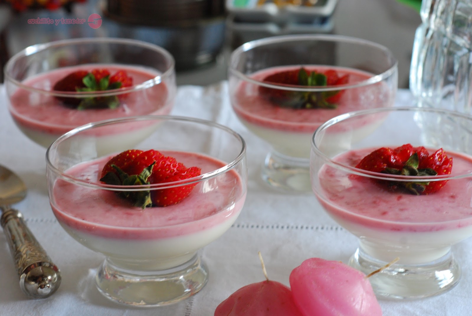 Las fresas frescas le aportan a la suave pannacotta ese toque frutal que tanto me gusta. Su presentación en copas o pequeños vasitos la hace muy cómoda y vistosa para nuestras mesas veraniegas, época en la que se agradece todo lo que nos permita disfrutar del tiempo libre sin renunciar a un magnífico postre con el que quedar como reyes...